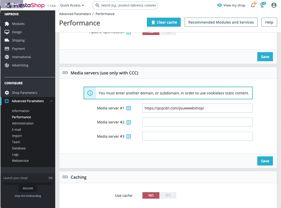 Ga op de Admin-balk naar Advanced parameters > performance.